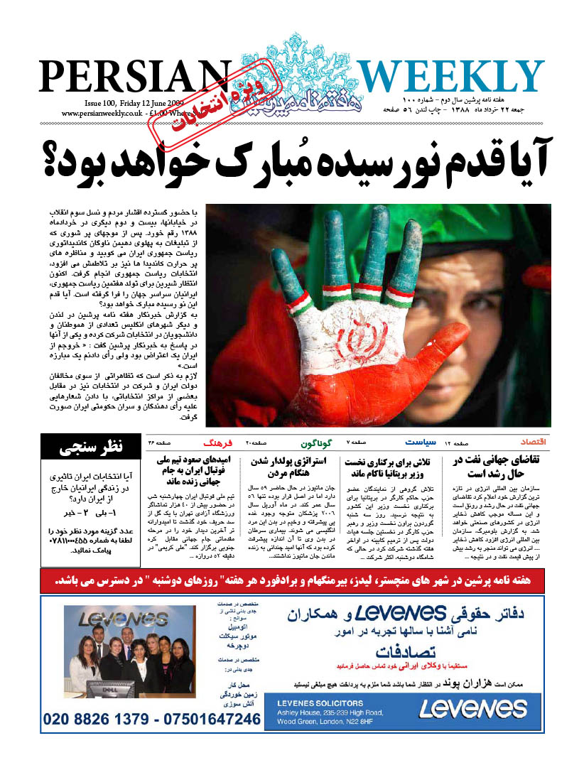 Issue 100 – 12 June 2009 persianweekly 12 ژوئن 2009 سال سوم 2009 - شماره 77 تا شماره 128 دیدگاهها برای Issue 100 – 12 June 2009 بسته هستند 82 Views Related Articles Issue 126 – 11 Dec 2009 4 دسامبر 2009 Issue 128 – 25 Dec 2009 4 دسامبر 2009 Issue 127 – 18 Dec 2009 4 دسامبر 2009 Share Facebook Twitter Stumbleupon LinkedIn Pinterest