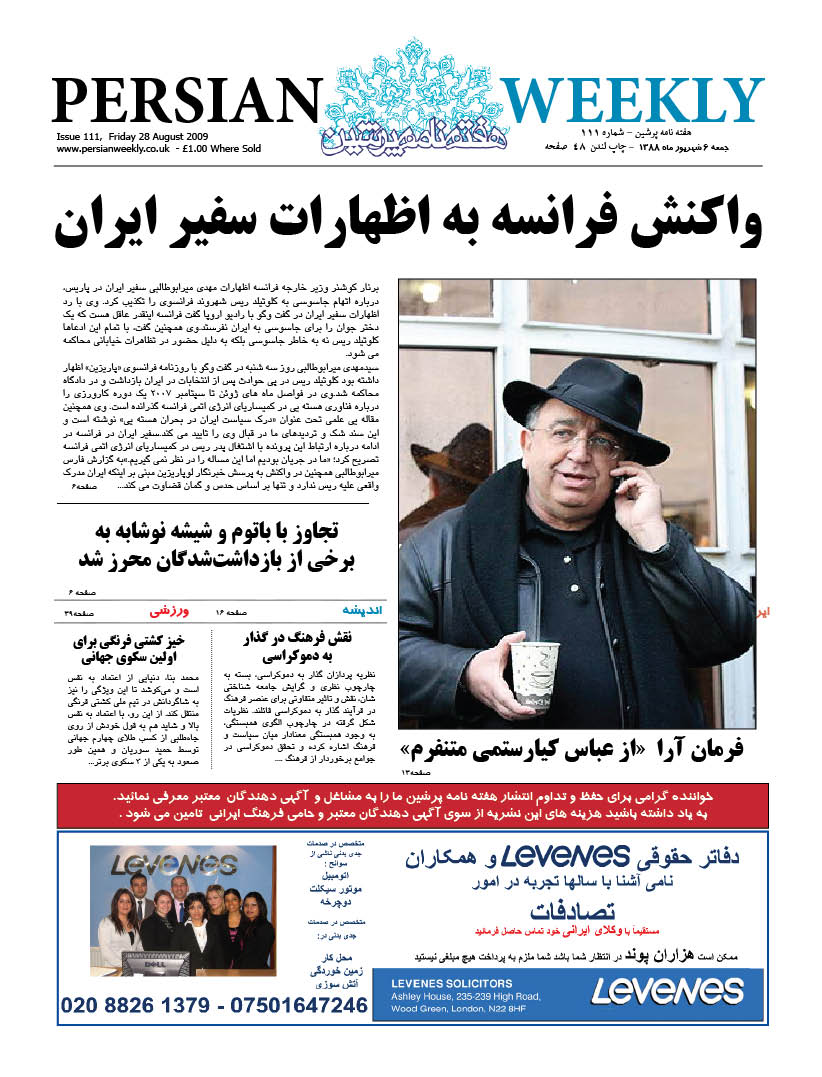 Issue 111 – 28 Aug 2009 persianweekly 7 آگوست 2009 سال سوم 2009 - شماره 77 تا شماره 128 دیدگاهها برای Issue 111 – 28 Aug 2009 بسته هستند 73 Views Related Articles Issue 127 – 18 Dec 2009 4 دسامبر 2009 Issue 126 – 11 Dec 2009 4 دسامبر 2009 Issue 128 – 25 Dec 2009 4 دسامبر 2009 Share Facebook Twitter Stumbleupon LinkedIn Pinterest