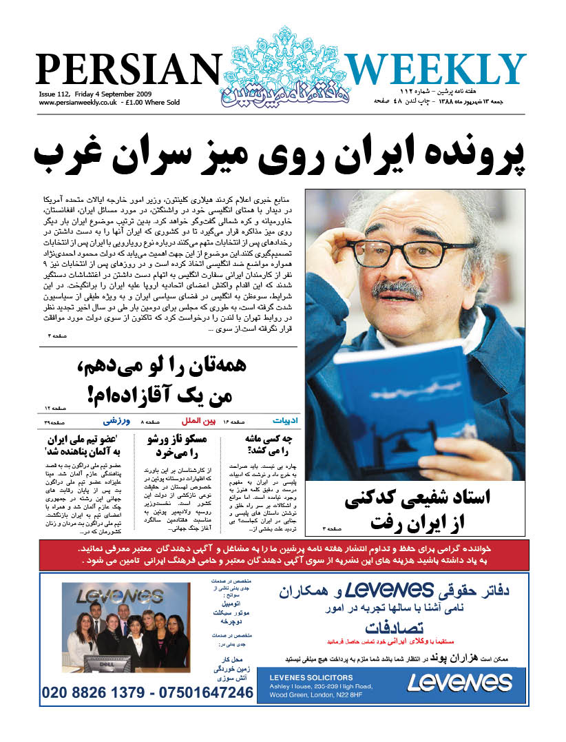 Issue 112 – 4 Sept 2009 persianweekly 4 سپتامبر 2009 سال سوم 2009 - شماره 77 تا شماره 128 دیدگاهها برای Issue 112 – 4 Sept 2009 بسته هستند 71 Views Related Articles Issue 127 – 18 Dec 2009 4 دسامبر 2009 Issue 126 – 11 Dec 2009 4 دسامبر 2009 Issue 128 – 25 Dec 2009 4 دسامبر 2009 Share Facebook Twitter Stumbleupon LinkedIn Pinterest