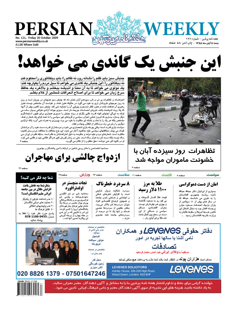 Issue 121 – 6 Nov 2009 persianweekly 6 نوامبر 2009 سال سوم 2009 - شماره 77 تا شماره 128 دیدگاهها برای Issue 121 – 6 Nov 2009 بسته هستند 92 Views Related Articles Issue 127 – 18 Dec 2009 4 دسامبر 2009 Issue 126 – 11 Dec 2009 4 دسامبر 2009 Issue 128 – 25 Dec 2009 4 دسامبر 2009 Share Facebook Twitter Stumbleupon LinkedIn Pinterest