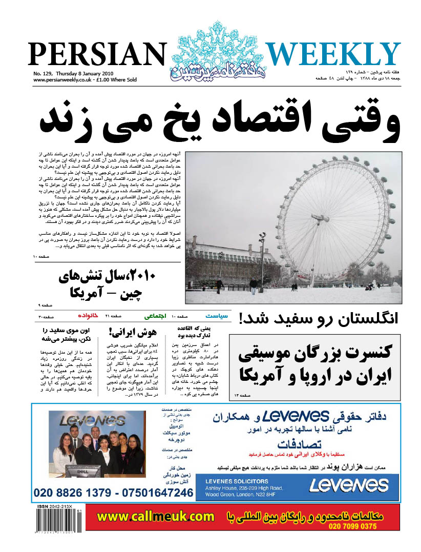 Issue 129 – 8 Jan 2010 persianweekly 8 ژانویه 2010 سال چهارم 2010 - شماره 129 تا شماره 179 دیدگاهها برای Issue 129 – 8 Jan 2010 بسته هستند 91 Views Related Articles Issue 179 – 24 Dec 2010 3 دسامبر 2010 Issue 176 – 3 Dec 2010 3 دسامبر 2010 Issue 177 – 10 Dec 2010 3 دسامبر 2010 Share Facebook Twitter Stumbleupon LinkedIn Pinterest