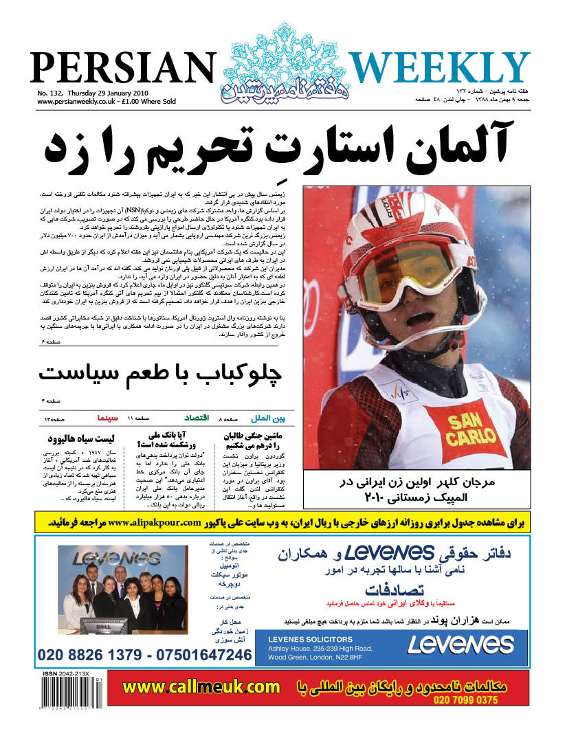 Issue 132 – 29 Jan 2010 persianweekly 8 ژانویه 2010 سال چهارم 2010 - شماره 129 تا شماره 179 دیدگاهها برای Issue 132 – 29 Jan 2010 بسته هستند 90 Views Related Articles Issue 179 – 24 Dec 2010 3 دسامبر 2010 Issue 176 – 3 Dec 2010 3 دسامبر 2010 Issue 177 – 10 Dec 2010 3 دسامبر 2010 Share Facebook Twitter Stumbleupon LinkedIn Pinterest