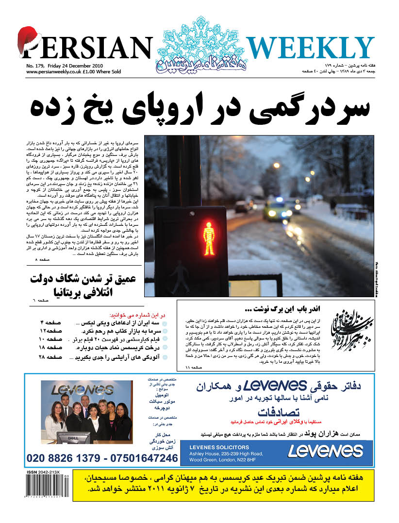 Issue 179 – 24 Dec 2010 persianweekly 3 دسامبر 2010 سال چهارم 2010 - شماره 129 تا شماره 179 دیدگاهها برای Issue 179 – 24 Dec 2010 بسته هستند 84 Views Related Articles Issue 176 – 3 Dec 2010 3 دسامبر 2010 Issue 177 – 10 Dec 2010 3 دسامبر 2010 Issue 178 – 17 Dec 2010 3 دسامبر 2010 Share Facebook Twitter Stumbleupon LinkedIn Pinterest