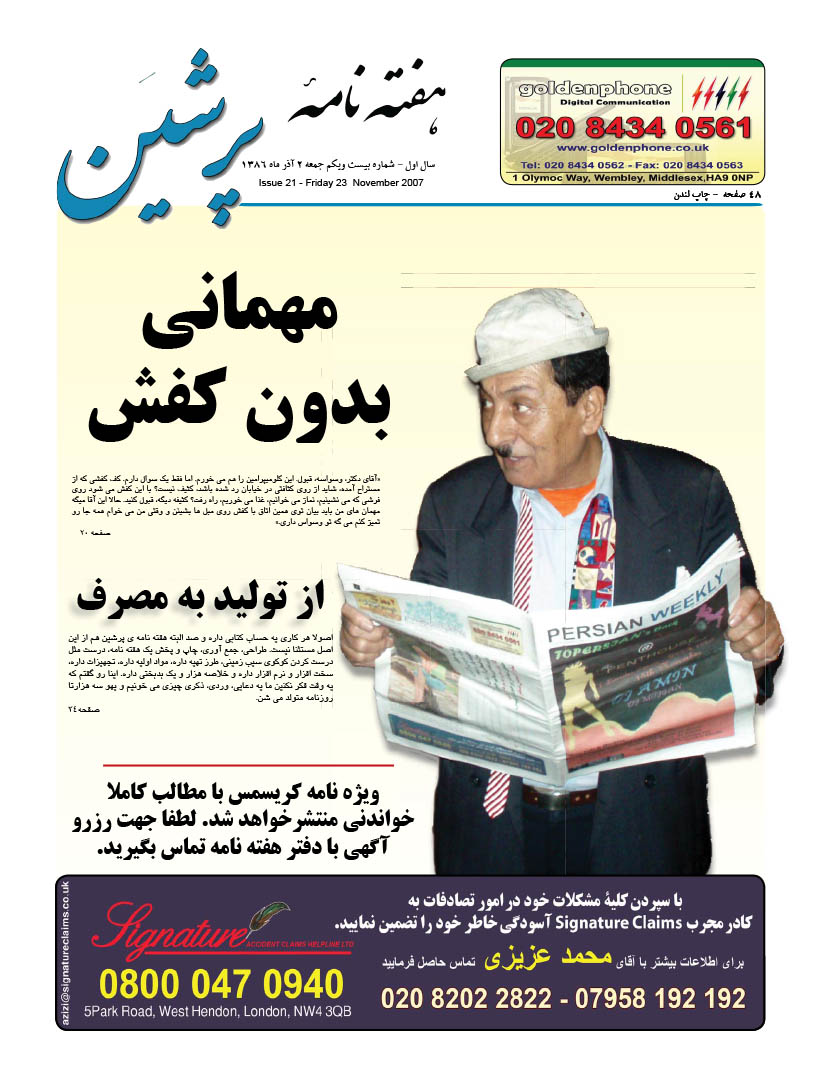 Issue 21 – 23 Nov 2007 persianweekly 2 نوامبر 2007 سال اول 2007 - پیش شماره تا شماره 25 دیدگاهها برای Issue 21 – 23 Nov 2007 بسته هستند 65 Views Related Articles Issue 05 – 3 Aug 2007 22 آگوست 2015 Issue 0 – 13 June 2007 22 آگوست 2015 Issue 06 – 10 Aug 2007 22 آگوست 2015 Share Facebook Twitter Stumbleupon LinkedIn Pinterest
