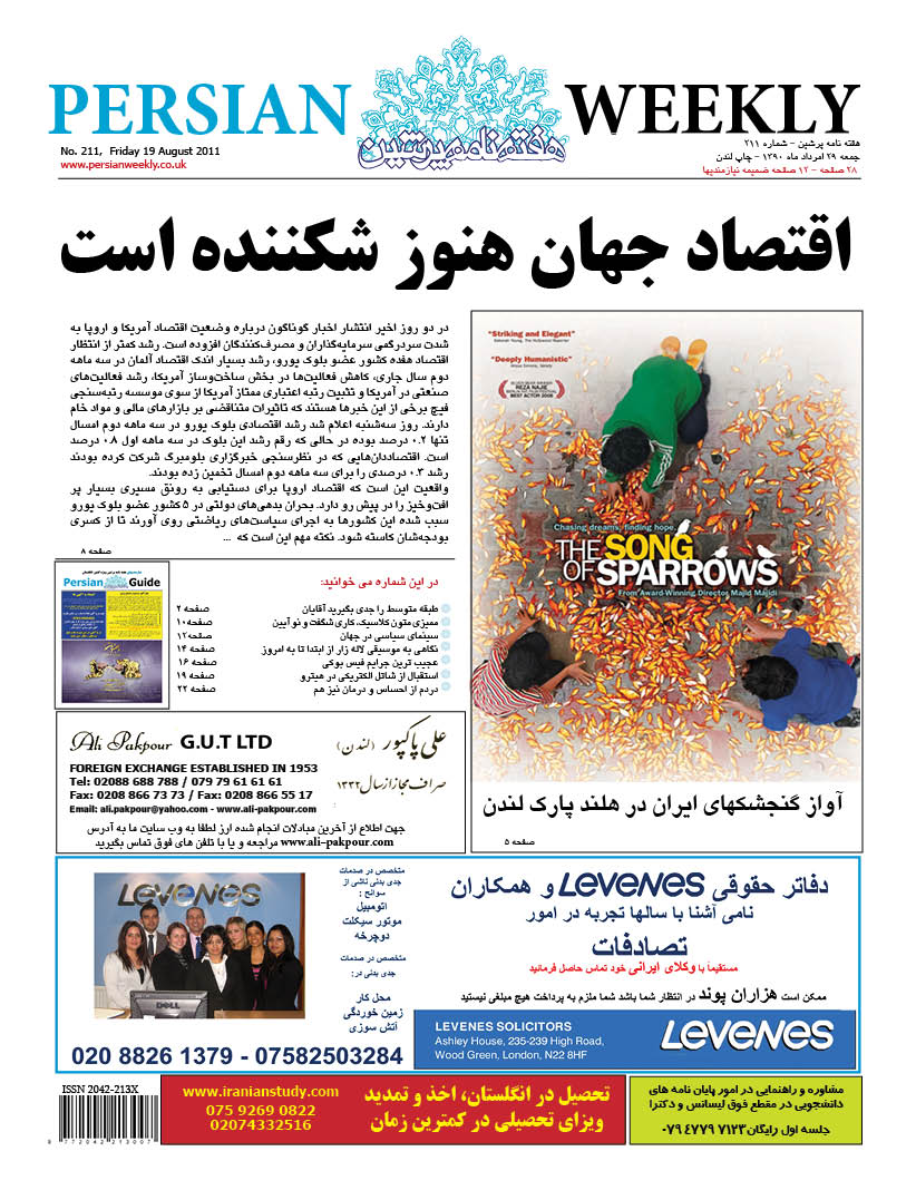 Issue 211 – 19 Aug 2011 persianweekly 19 آگوست 2011 سال پنجم 2011 - شماره 180 تا شماره 229 دیدگاهها برای Issue 211 – 19 Aug 2011 بسته هستند 85 Views Related Articles Issue 229 – 23 Dec 2011 2 دسامبر 2011 Issue 226 – 2 Dec 2011 2 دسامبر 2011 Issue 227 – 9 Dec 2011 2 دسامبر 2011 Share Facebook Twitter Stumbleupon LinkedIn Pinterest