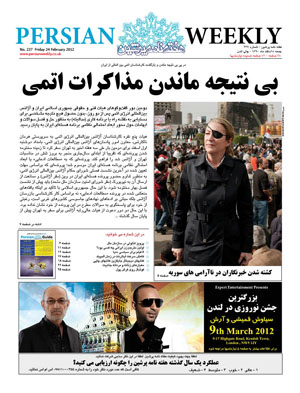 Issue 237 – 24 Feb 2012 persianweekly 3 فوریه 2012 سال ششم 2012 - شماره 230 تا شماره 278 دیدگاهها برای Issue 237 – 24 Feb 2012 بسته هستند 75 Views Related Articles Issue 278 – 21 Dec 2012 21 دسامبر 2012 Issue 230 – 6 Jan 2012 21 دسامبر 2012 Issue 231 – 13 Jan 2012 21 دسامبر 2012 Share Facebook Twitter Stumbleupon LinkedIn Pinterest