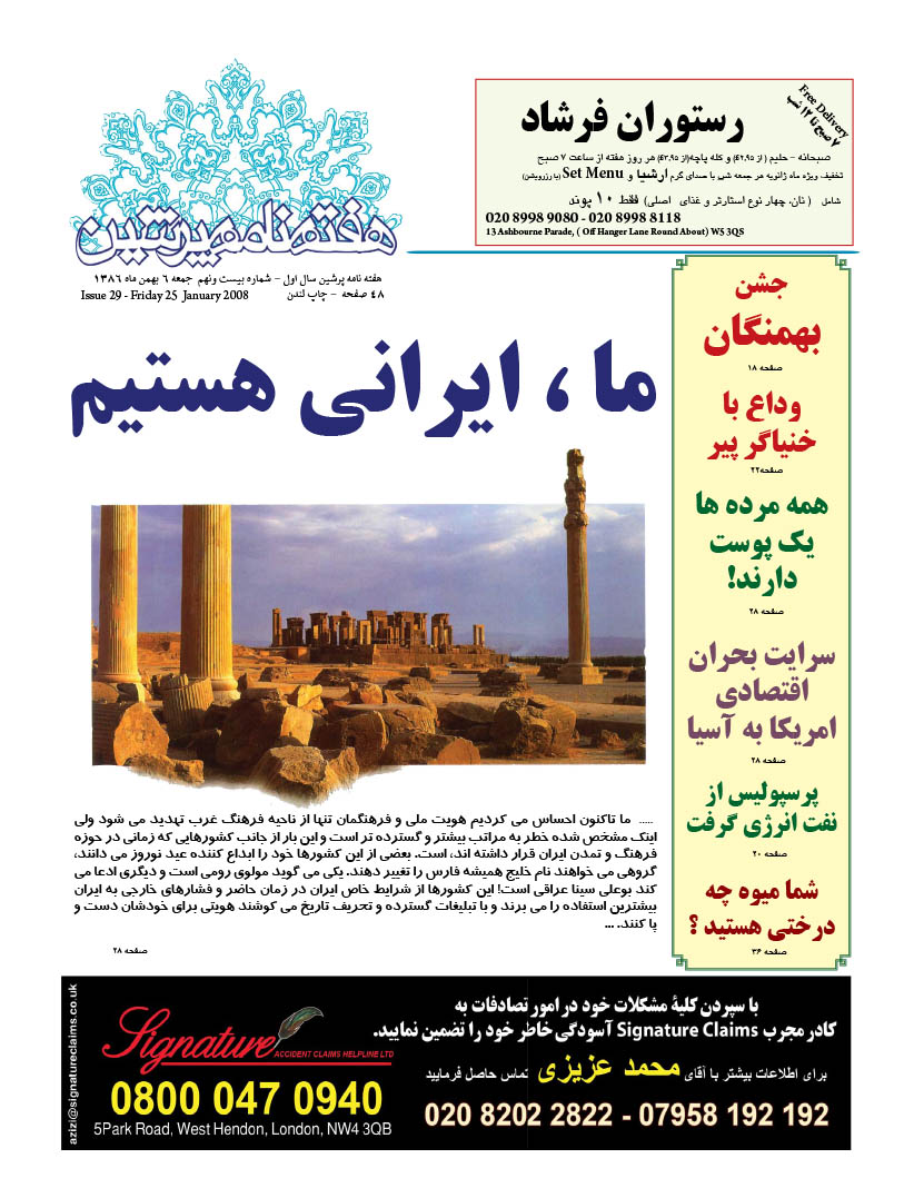 Issue 29 – 25 Jan 2008 persianweekly 4 ژانویه 2008 سال دوم 2008 - شماره 26 تا شماره 76 دیدگاهها برای Issue 29 – 25 Jan 2008 بسته هستند 72 Views Related Articles Issue 75 – 12 Dec 2008 5 دسامبر 2008 Issue 76 – 19 Dec 2008 5 دسامبر 2008 Issue 74 – 5 Dec 2008 5 دسامبر 2008 Share Facebook Twitter Stumbleupon LinkedIn Pinterest