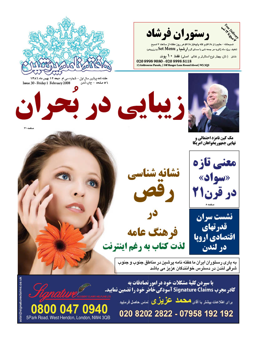 Issue 30 – 1 Feb 2008 persianweekly 1 فوریه 2008 سال دوم 2008 - شماره 26 تا شماره 76 دیدگاهها برای Issue 30 – 1 Feb 2008 بسته هستند 237 Views Related Articles Issue 75 – 12 Dec 2008 5 دسامبر 2008 Issue 76 – 19 Dec 2008 5 دسامبر 2008 Issue 74 – 5 Dec 2008 5 دسامبر 2008 Share Facebook Twitter Stumbleupon LinkedIn Pinterest