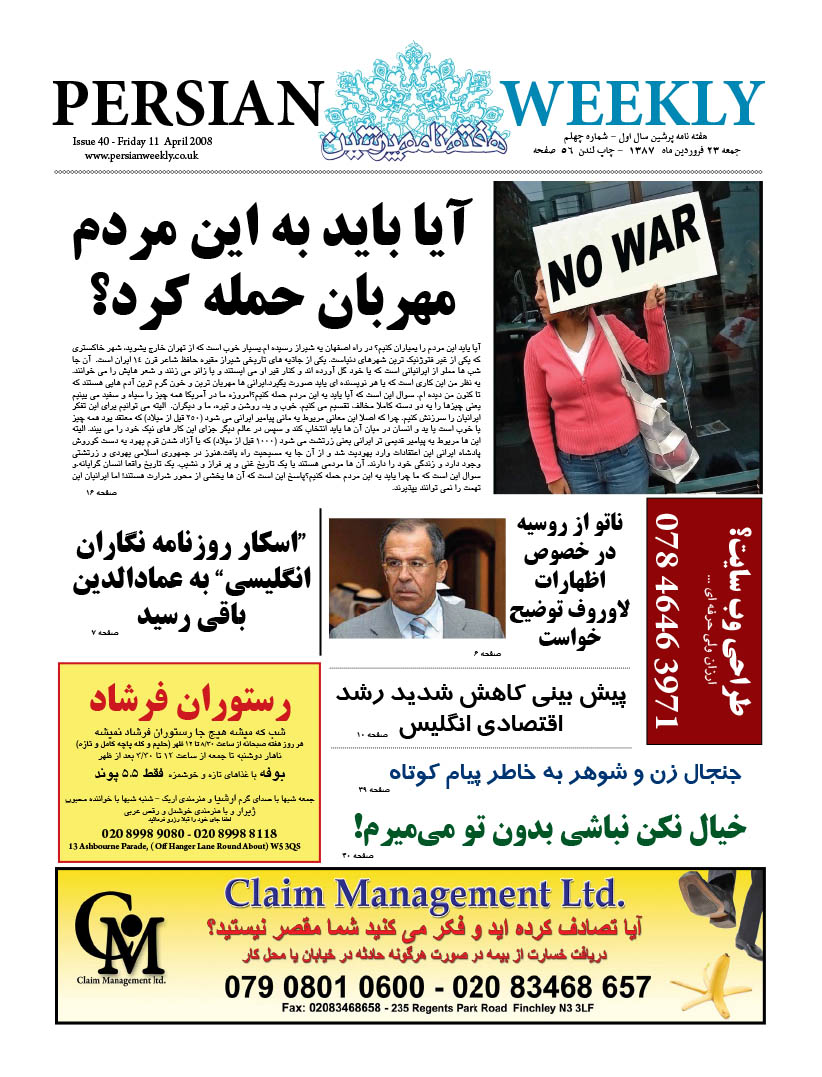 Issue 40 – 11 April 2008 persianweekly 4 آوریل 2008 سال دوم 2008 - شماره 26 تا شماره 76 دیدگاهها برای Issue 40 – 11 April 2008 بسته هستند 61 Views Related Articles Issue 75 – 12 Dec 2008 5 دسامبر 2008 Issue 76 – 19 Dec 2008 5 دسامبر 2008 Issue 74 – 5 Dec 2008 5 دسامبر 2008 Share Facebook Twitter Stumbleupon LinkedIn Pinterest