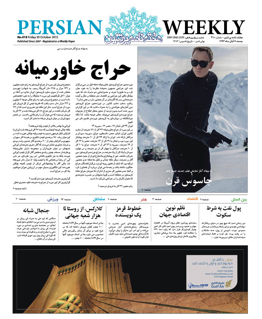 Issue 418 – 30 Oct 2015 webmaster 30 اکتبر 2015 سال نهم 2015 - شماره 377 تا شماره 426 دیدگاهها برای Issue 418 – 30 Oct 2015 بسته هستند 102 Views Related Articles Issue 426 – 25 Dec 2015 30 اکتبر 2015 Issue 420 – 13 Nov 2015 30 اکتبر 2015 Issue 419 – 06 Nov 2015 30 اکتبر 2015 Share Facebook Twitter Stumbleupon LinkedIn Pinterest