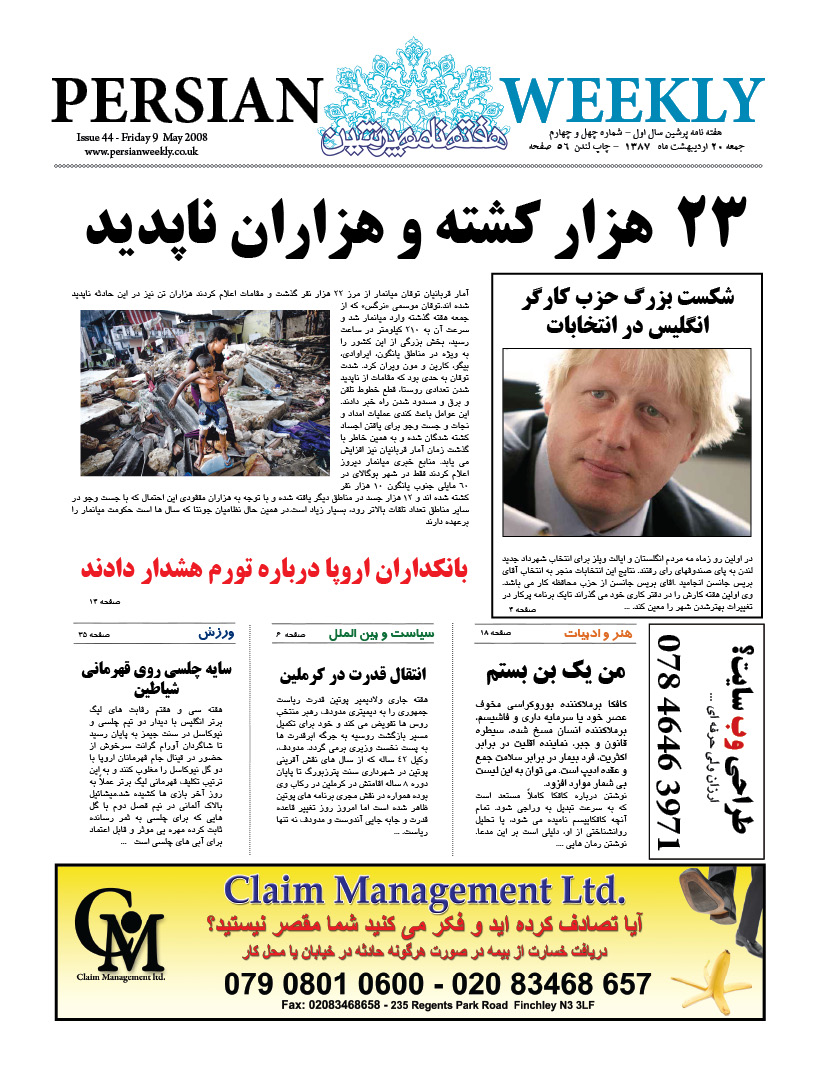 Issue 44 – 9 May 2008 persianweekly 2 می 2008 سال دوم 2008 - شماره 26 تا شماره 76 دیدگاهها برای Issue 44 – 9 May 2008 بسته هستند 66 Views Related Articles Issue 75 – 12 Dec 2008 5 دسامبر 2008 Issue 76 – 19 Dec 2008 5 دسامبر 2008 Issue 74 – 5 Dec 2008 5 دسامبر 2008 Share Facebook Twitter Stumbleupon LinkedIn Pinterest