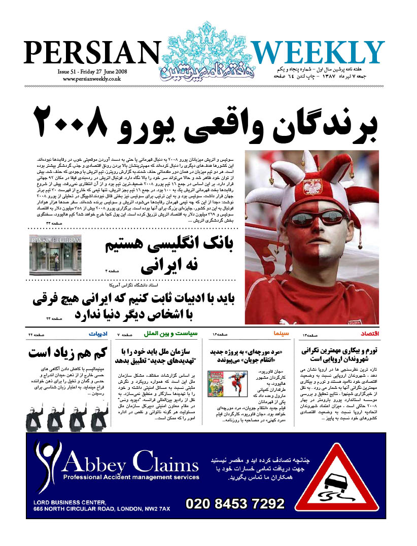 Issue 51 – 27 June 2008 persianweekly 9 می 2008 سال دوم 2008 - شماره 26 تا شماره 76 دیدگاهها برای Issue 51 – 27 June 2008 بسته هستند 79 Views Related Articles Issue 75 – 12 Dec 2008 5 دسامبر 2008 Issue 76 – 19 Dec 2008 5 دسامبر 2008 Issue 74 – 5 Dec 2008 5 دسامبر 2008 Share Facebook Twitter Stumbleupon LinkedIn Pinterest
