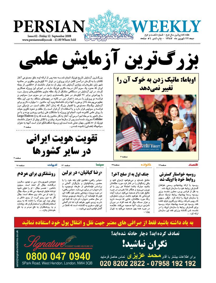 Issue 62 – 12 Sept 2008 persianweekly 5 سپتامبر 2008 سال دوم 2008 - شماره 26 تا شماره 76 دیدگاهها برای Issue 62 – 12 Sept 2008 بسته هستند 161 Views Related Articles Issue 75 – 12 Dec 2008 5 دسامبر 2008 Issue 76 – 19 Dec 2008 5 دسامبر 2008 Issue 74 – 5 Dec 2008 5 دسامبر 2008 Share Facebook Twitter Stumbleupon LinkedIn Pinterest
