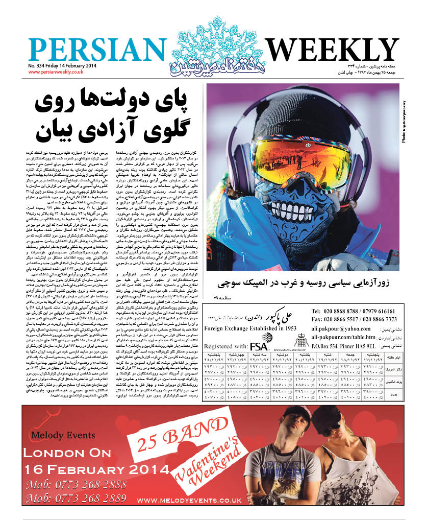 Issue 334- 14 Feb 2014 persianweekly 7 فوریه 2014 سال هشتم 2014 - شماره 328- تا شماره 376 دیدگاهها برای Issue 334- 14 Feb 2014 بسته هستند 72 Views Related Articles Issue 376- 19 Dec 2014 19 دسامبر 2014 Issue 375- 12 Dec 2014 12 دسامبر 2014 Issue 374- 5 Dec 2014 5 دسامبر 2014 Share Facebook Twitter Stumbleupon LinkedIn Pinterest