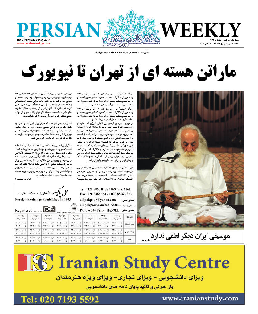 Issue 344- 9 May 2014 persianweekly 9 می 2014 سال هشتم 2014 - شماره 328- تا شماره 376 دیدگاهها برای Issue 344- 9 May 2014 بسته هستند 84 Views Related Articles Issue 376- 19 Dec 2014 19 دسامبر 2014 Issue 375- 12 Dec 2014 12 دسامبر 2014 Issue 374- 5 Dec 2014 5 دسامبر 2014 Share Facebook Twitter Stumbleupon LinkedIn Pinterest