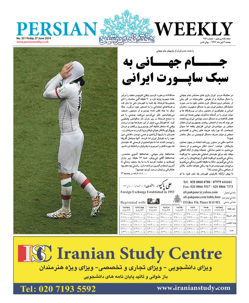 Issue 351- 27 June 2014 persianweekly 27 ژوئن 2014 سال هشتم 2014 - شماره 328- تا شماره 376 دیدگاهها برای Issue 351- 27 June 2014 بسته هستند 84 Views Related Articles Issue 376- 19 Dec 2014 19 دسامبر 2014 Issue 375- 12 Dec 2014 12 دسامبر 2014 Issue 374- 5 Dec 2014 5 دسامبر 2014 Share Facebook Twitter Stumbleupon LinkedIn Pinterest