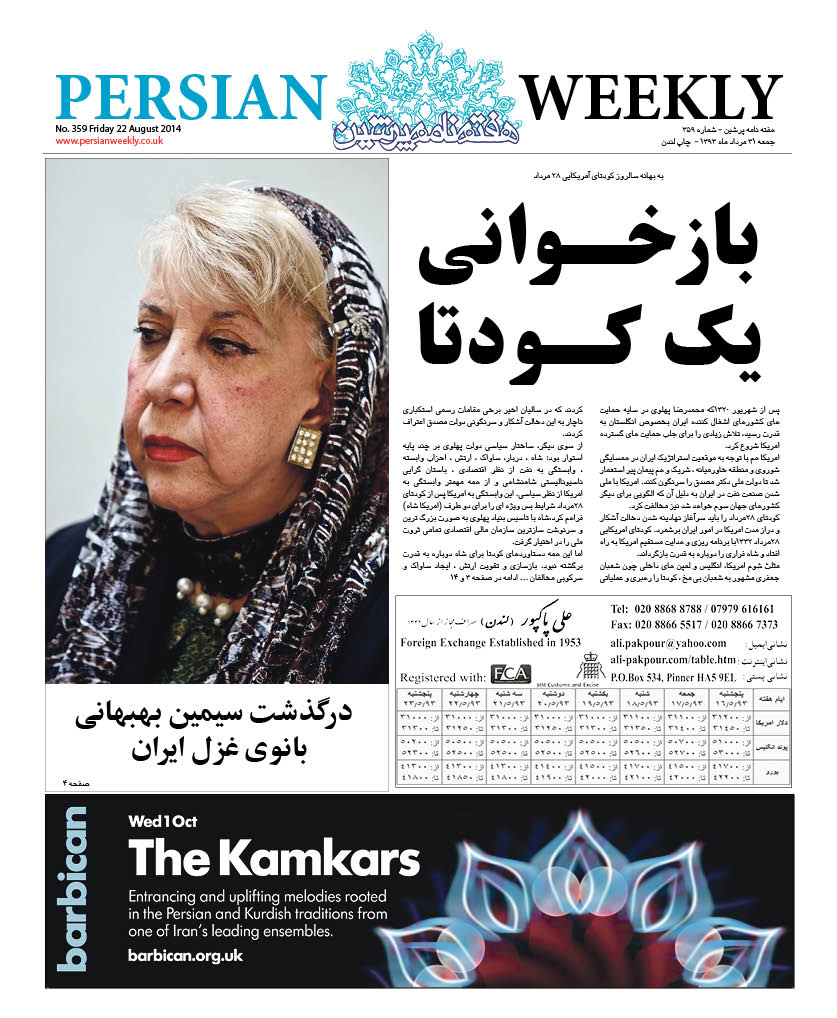Issue 359- 22 Aug 2014 persianweekly 22 آگوست 2014 سال هشتم 2014 - شماره 328- تا شماره 376 دیدگاهها برای Issue 359- 22 Aug 2014 بسته هستند 80 Views Related Articles Issue 376- 19 Dec 2014 19 دسامبر 2014 Issue 375- 12 Dec 2014 12 دسامبر 2014 Issue 374- 5 Dec 2014 5 دسامبر 2014 Share Facebook Twitter Stumbleupon LinkedIn Pinterest