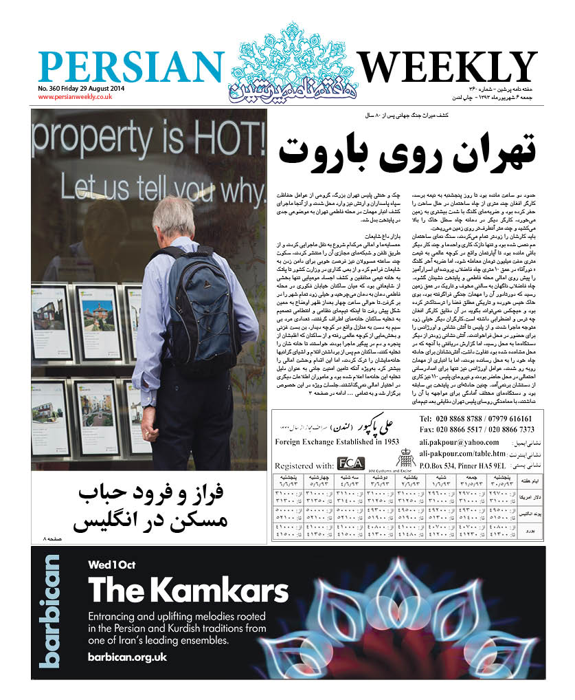 Issue 360- 29 Aug 2014 persianweekly 29 ژوئن 2014 سال هشتم 2014 - شماره 328- تا شماره 376 دیدگاهها برای Issue 360- 29 Aug 2014 بسته هستند 80 Views Related Articles Issue 376- 19 Dec 2014 19 دسامبر 2014 Issue 375- 12 Dec 2014 12 دسامبر 2014 Issue 374- 5 Dec 2014 5 دسامبر 2014 Share Facebook Twitter Stumbleupon LinkedIn Pinterest
