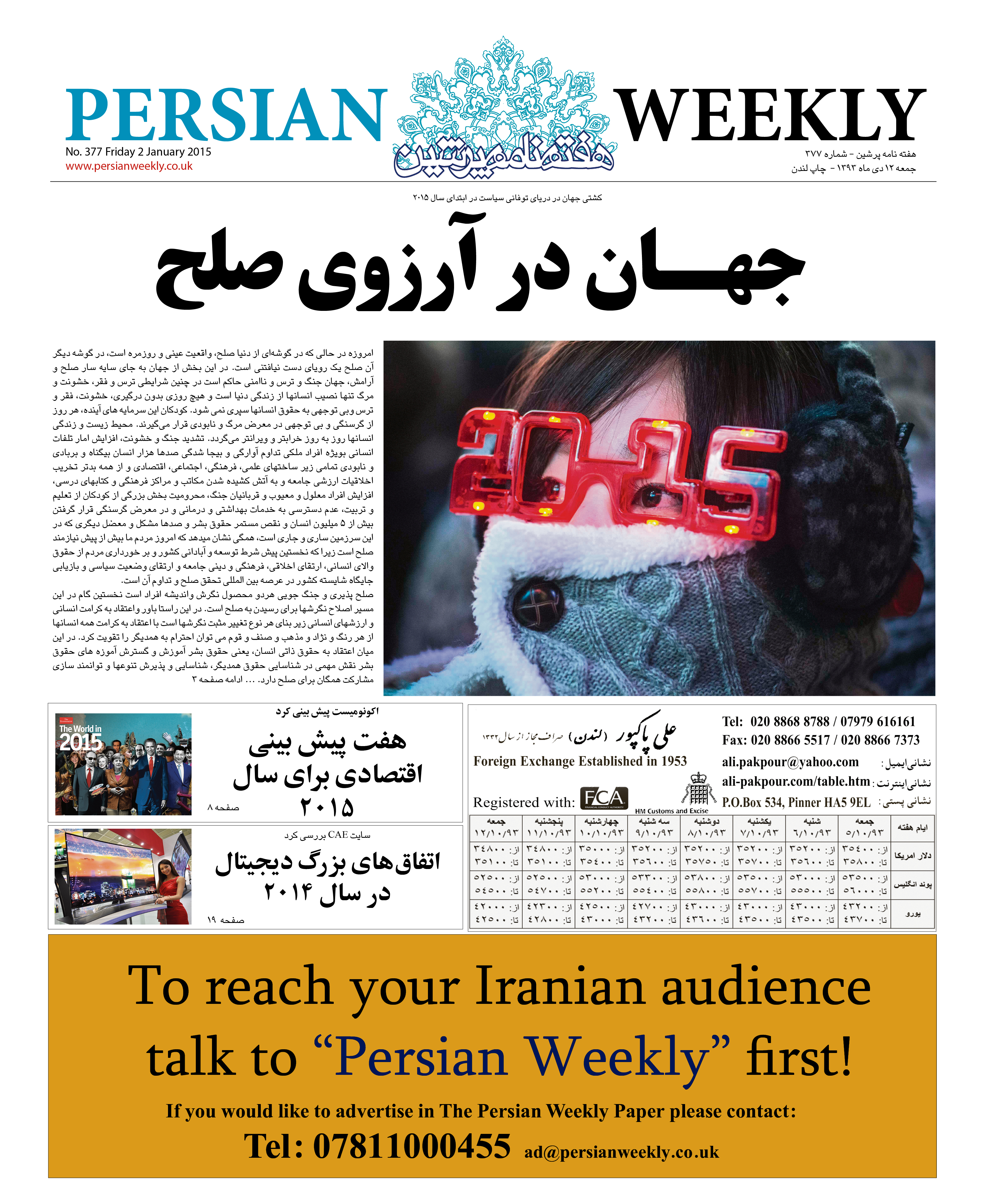 Issue 377- 2 Jan 2015 persianweekly 2 ژانویه 2015 سال نهم 2015 - شماره 377 تا شماره 426 دیدگاهها برای Issue 377- 2 Jan 2015 بسته هستند 91 Views Related Articles Issue 426 – 25 Dec 2015 30 اکتبر 2015 Issue 419 – 06 Nov 2015 30 اکتبر 2015 Issue 418 – 30 Oct 2015 30 اکتبر 2015 Share Facebook Twitter Stumbleupon LinkedIn Pinterest