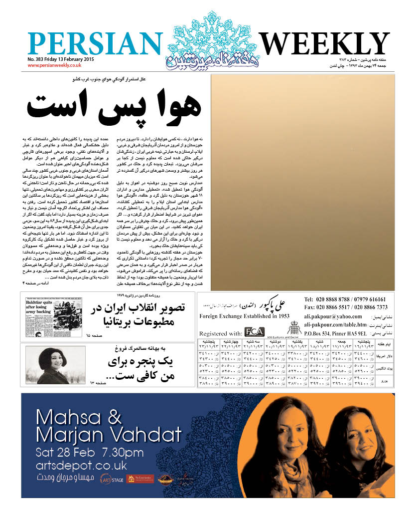 Issue 383 – 13 Feb 2015 persianweekly 13 فوریه 2015 سال نهم 2015 - شماره 377 تا شماره 426 دیدگاهها برای Issue 383 – 13 Feb 2015 بسته هستند 84 Views Related Articles Issue 426 – 25 Dec 2015 30 اکتبر 2015 Issue 419 – 06 Nov 2015 30 اکتبر 2015 Issue 418 – 30 Oct 2015 30 اکتبر 2015 Share Facebook Twitter Stumbleupon LinkedIn Pinterest