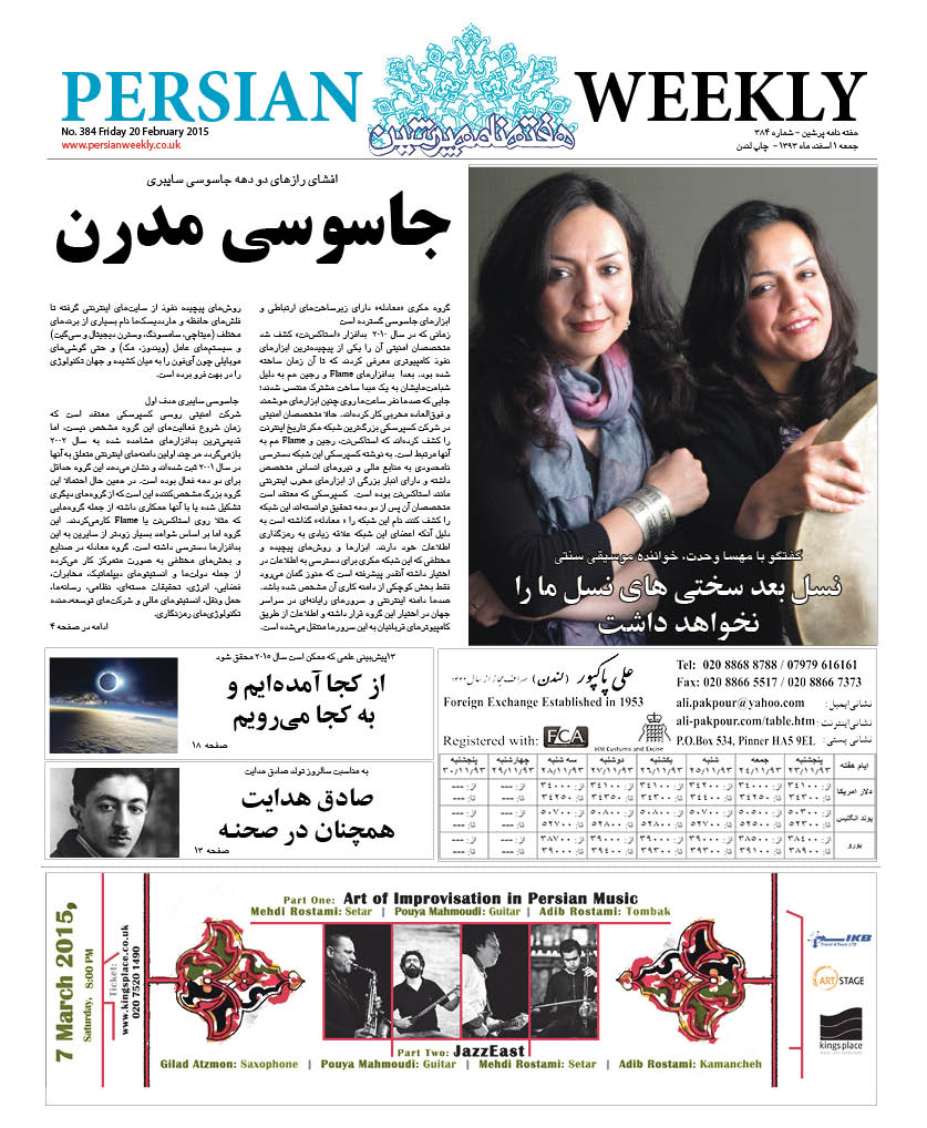 Issue 384 – 20 Feb 2015 persianweekly 20 فوریه 2015 سال نهم 2015 - شماره 377 تا شماره 426 دیدگاهها برای Issue 384 – 20 Feb 2015 بسته هستند 81 Views Related Articles Issue 426 – 25 Dec 2015 30 اکتبر 2015 Issue 419 – 06 Nov 2015 30 اکتبر 2015 Issue 418 – 30 Oct 2015 30 اکتبر 2015 Share Facebook Twitter Stumbleupon LinkedIn Pinterest