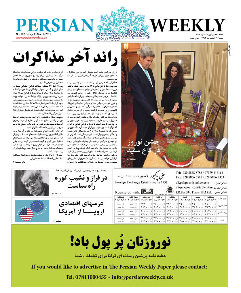 Issue 387 – 13 March 2015 persianweekly 13 مارس 2015 سال نهم 2015 - شماره 377 تا شماره 426 دیدگاهها برای Issue 387 – 13 March 2015 بسته هستند 85 Views Related Articles Issue 420 – 13 Nov 2015 30 اکتبر 2015 Issue 426 – 25 Dec 2015 30 اکتبر 2015 Issue 418 – 30 Oct 2015 30 اکتبر 2015 Share Facebook Twitter Stumbleupon LinkedIn Pinterest