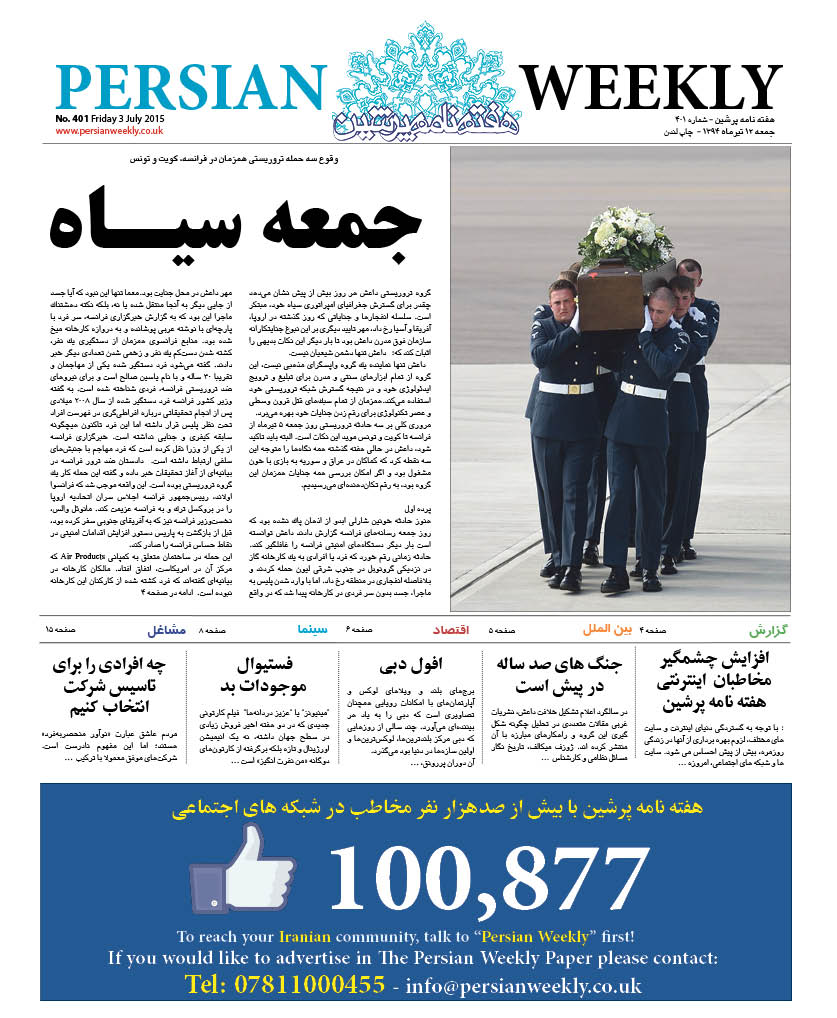 Issue 401 – 03 July 2015 webmaster 3 جولای 2015 سال نهم 2015 - شماره 377 تا شماره 426 دیدگاهها برای Issue 401 – 03 July 2015 بسته هستند 93 Views Related Articles Issue 426 – 25 Dec 2015 30 اکتبر 2015 Issue 420 – 13 Nov 2015 30 اکتبر 2015 Issue 418 – 30 Oct 2015 30 اکتبر 2015 Share Facebook Twitter Stumbleupon LinkedIn Pinterest