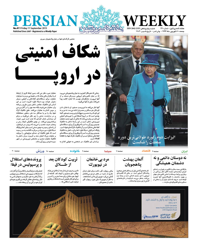 Issue 411 – 11 Sept 2015 webmaster 4 سپتامبر 2015 سال نهم 2015 - شماره 377 تا شماره 426 دیدگاهها برای Issue 411 – 11 Sept 2015 بسته هستند 103 Views Related Articles Issue 418 – 30 Oct 2015 30 اکتبر 2015 Issue 420 – 13 Nov 2015 30 اکتبر 2015 Issue 419 – 06 Nov 2015 30 اکتبر 2015 Share Facebook Twitter Stumbleupon LinkedIn Pinterest
